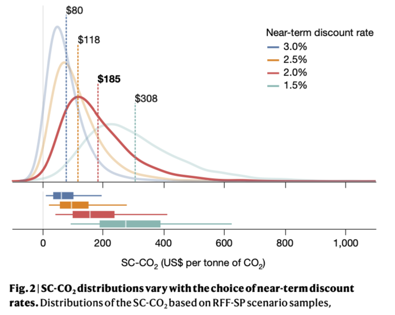 - \(\implies\) SCC = $190/ton at 2% discount rate in $2020